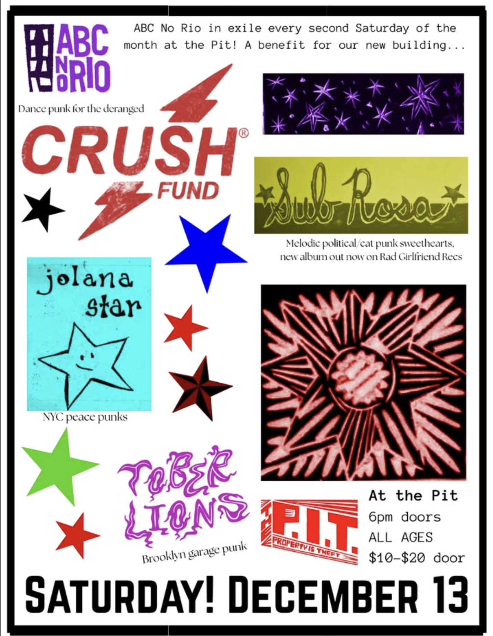 Saturday 12/13 ABC No Rio in Exile kicks off monthly punk and hardcore shows every second Saturday of the month at everyone's favorite Brooklyn anarchist bookstore @the_p.i.t._